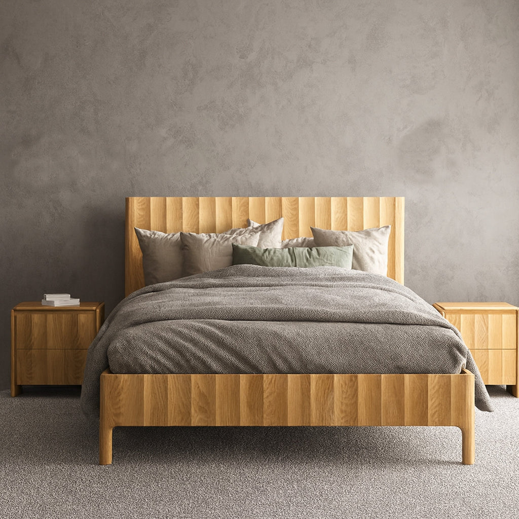 The Brandon bedroom furniture range combines elegant slatted scalloped fronts with durable American oak construction with Solid bed head.