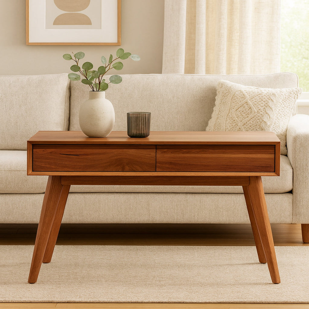 The Evie Console table features a solid construction made from Blackwood hardwood timber. This model is available in 2 sizes, the 120cm version features 2 drawers & the 180cm version features 3 drawers.