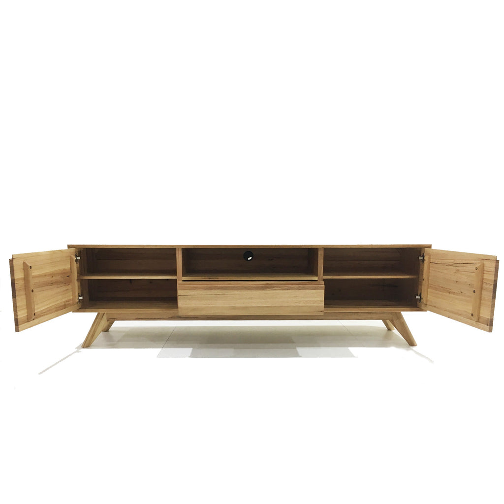 Oslo TV entertainment unit features modern design and a solid construction made from Blackbutt hardwood timber.